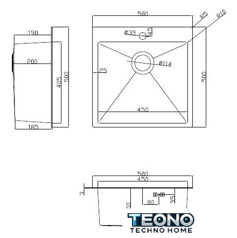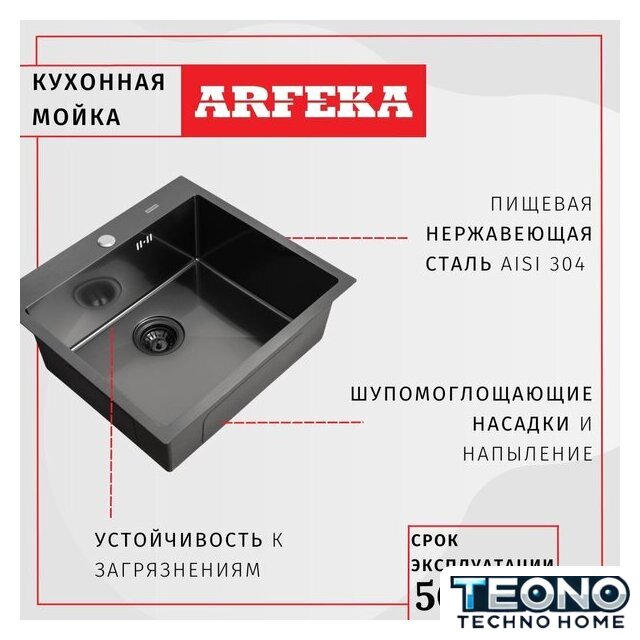 врезная на столешницу, нержавеющая сталь, размеры: 50x50 см, в шкаф 60 см