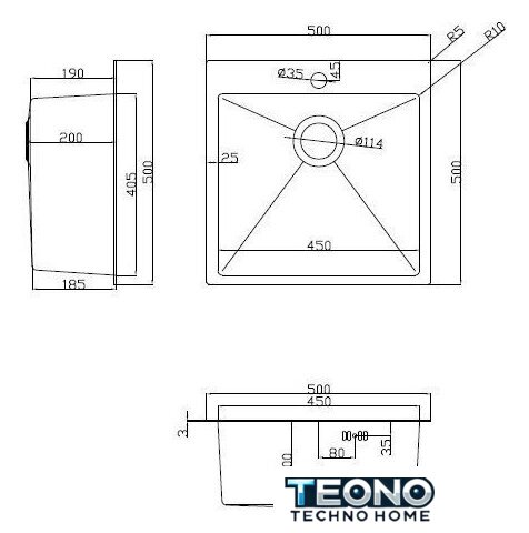 врезная на столешницу, нержавеющая сталь, размеры: 50x50 см, в шкаф 60 см