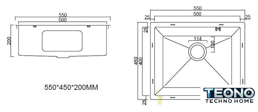 врезная под столешницу, нержавеющая сталь, размеры: 55x45 см