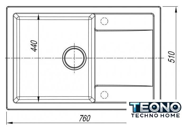 врезная на столешницу, искусственный камень, размеры: 76x51 см, в шкаф 60 см