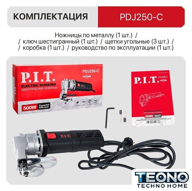 | Комплектация | - Ножницы по металлу,, - коробка,, - ключ шестигранный,, - щетки угольные,, - инструкция по эксплуатации. |