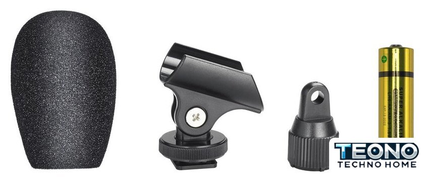 | Комплект поставки | - съемная ветрозащита, - держатель для микрофона, - два акустических кабеля 3.5 мм, - два переходника на 6.3 мм, - одна батарейка стандарта AA, - документация |