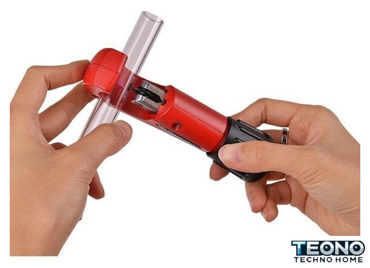 | Комплектация | Три алюминиевых гибочных формы (135°, 90°, 180° и 360°), резак для трубок, фаскосниматель с тремя лезвиями. |