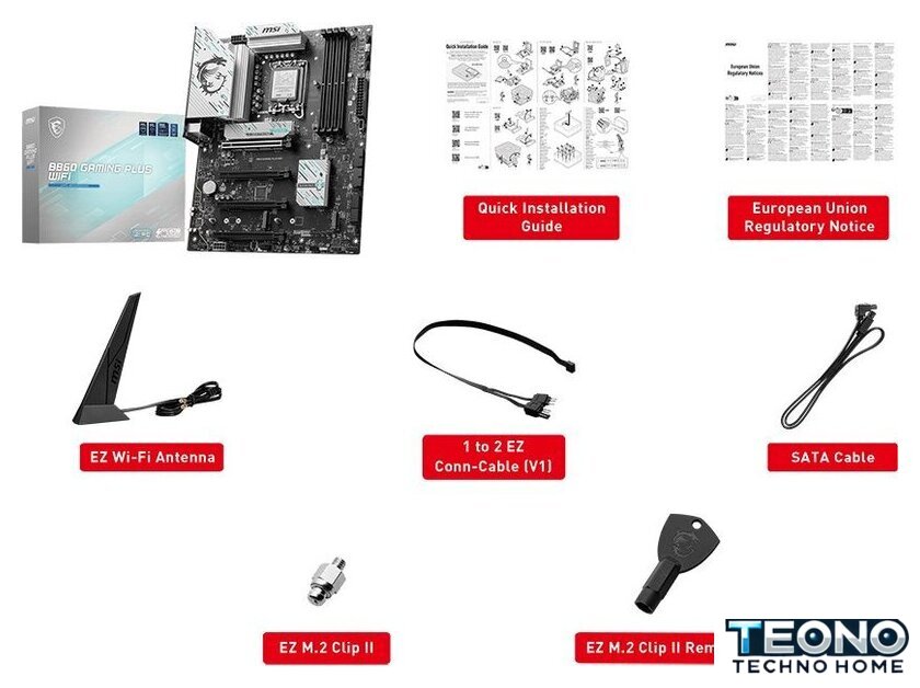 | Комплектация | - кабель SATA- Wi-Fi антенна - 1-2 EZ кабель - винт EZ M.2 Clip II- EZ M.2 Clip II экстрактор- документация |