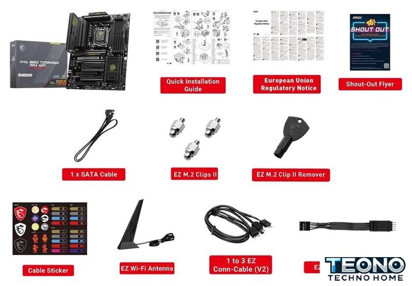 | Комплектация | - кабель SATA- EZ Wi-Fi антенна - EZ кабель передней панели- 1-3 EZ кабель - 3 винта EZ M.2 Clip II- EZ M.2 Clip II экстрактор- набор стикеров- документация |