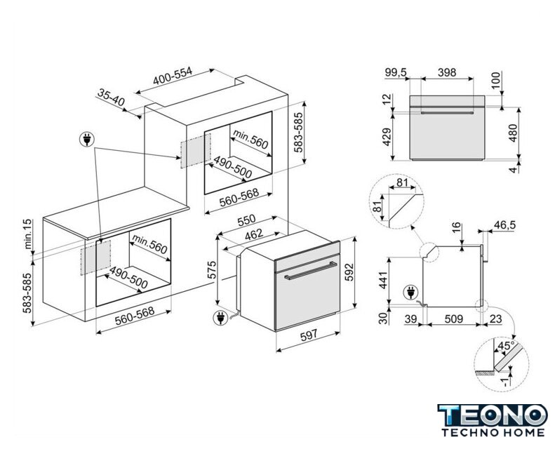 | Режимы работы | нижний нагрев, двухсторонний нагрев, большой гриль, вентиляционный нагрев, гриль + конвекция, двухсторонний нагрев + конвекция, двухсторонний + вентиляционный нагрев (3D), размораживание, предварительный разогрев духовки |