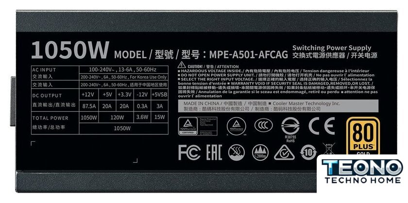 | Комбинированная нагрузка по +12V | 1050 Вт |