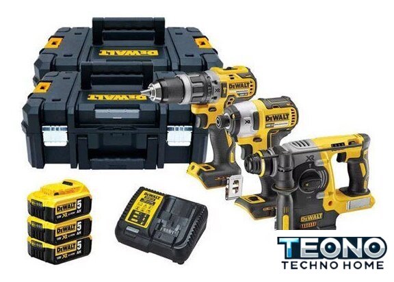 | Комплектация | • Дрель-шуруповерт ударная аккумуляторная бесщёточная DCD796 - 1 шт• Винтоверт аккумуляторный ударный бесщёточный DCF887 - 1 шт• Перфоратор аккумуляторный бесщёточный DCH273 - 1 шт• Аккумуляторная батарея 18 В XR Li-lon 5 Ач - 3 шт• Зарядное устройство - 1 шт• Чемодан системы TSTAK - 2 шт |