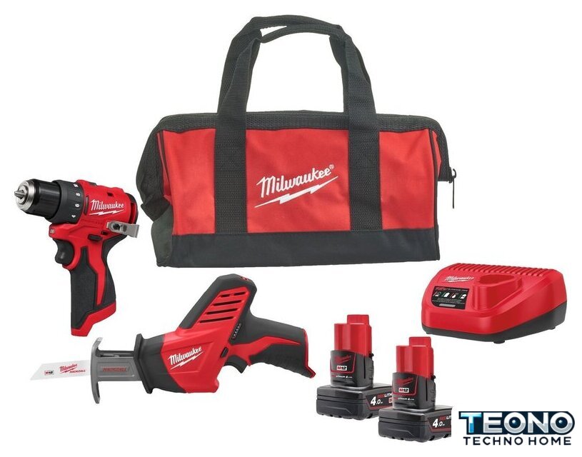 | Комплектация | - Беспроводная дрель-шуруповерт M12 BLDDRC 40 Нм- Компактная аккумуляторная пила C12 HZ HACKZALL- 2 батареи M12 B4- Зарядное устройство C12 C- Сумка |