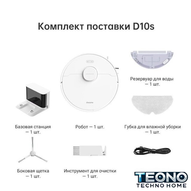 | Комплектация | Робот-пылесосРезервуар для воды с тряпкойБазовая станцияЗапасная боковая щеткаИнструмент для очисткиКабель питания |