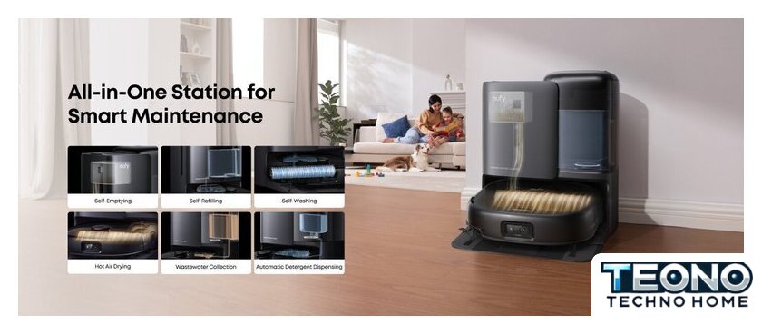| Функциональные особенности базы | мойка швабры, сушка швабры, самоочистка пылесборника робота, заправка робота водой |
