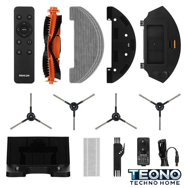 | Комплектация | зарядная станция, пульт дистанционного управления, адаптер питания, 2 запасные боковые щетки, запасной HEPA-фильтр, запасной поролоновый фильтр, 3 текстильные салфетки для влажной уборки, насадка для влажной уборки, щетка для чистки |