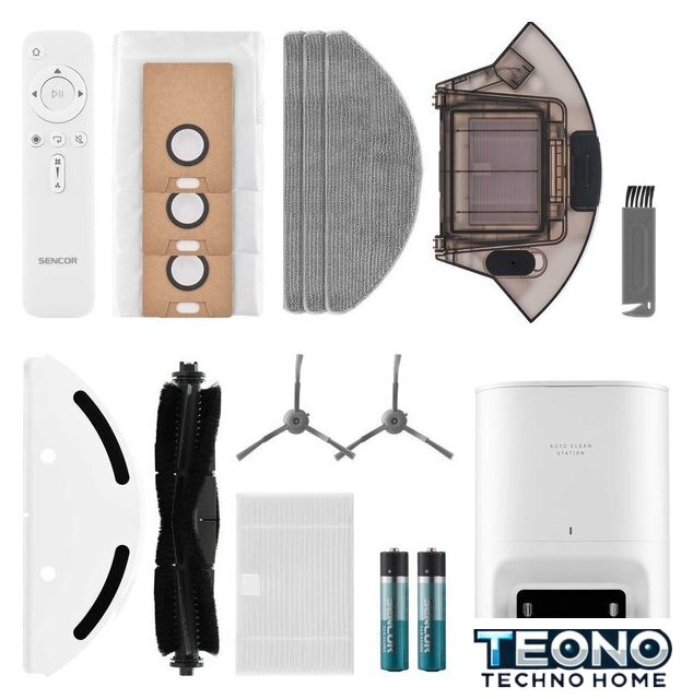 | Комплектация | боковая щетка и фильтры, зарядная станция, пульт дистанционного управления, насадка для влажной уборки, 3 сменные салфетки для влажной уборки, сменная боковая щетка, запасной HEPA-фильтр, запасной поролоновый фильтр, щётка для очистки, 2 батарейки AAA |