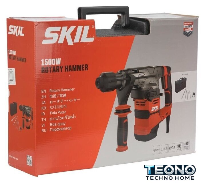| Комплект поставки | - Перфоратор SKIL RH1183- 3 бура SDS+ (8, 10, 12 мм)- Пика (острое зубило)- Плоское зубило- Патрон 13 мм с адаптером SDS+- Ограничитель глубины- Прочный кейс |