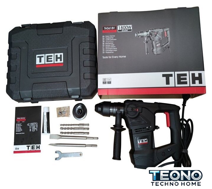 | Комплект поставки | - Перфоратор;, - Рукоятка дополнительная;, - Набор оснастки (буры, пики);, - Пыльник;, - Смазка для буров;, - Комплект угольных щеток;, - Руководство по эксплуатации;, - Кейс. |