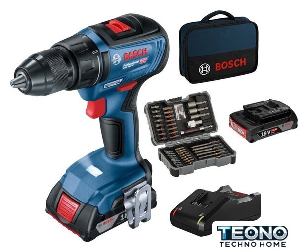 | Комплектация | - Аккумуляторная дрель-шуруповёрт;- 2 аккумулятора 2,0 Ач;- Зарядное устройство GAL 18V-20;- Набор бит - 43 шт;- Текстильная сумка |