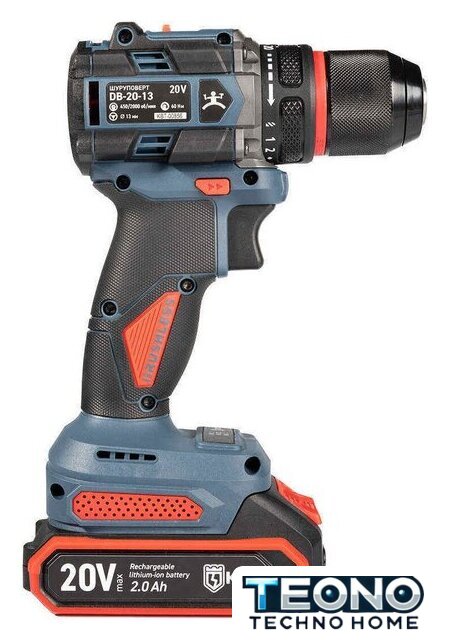 | Комплектация | - аккумуляторный шуруповерт DB-20–13, - 2 аккумуляторные батареи: Li-Ion, 20 В/2Ач, - зарядное устройство от сети 230 В, - прочный пластиковый кейс |