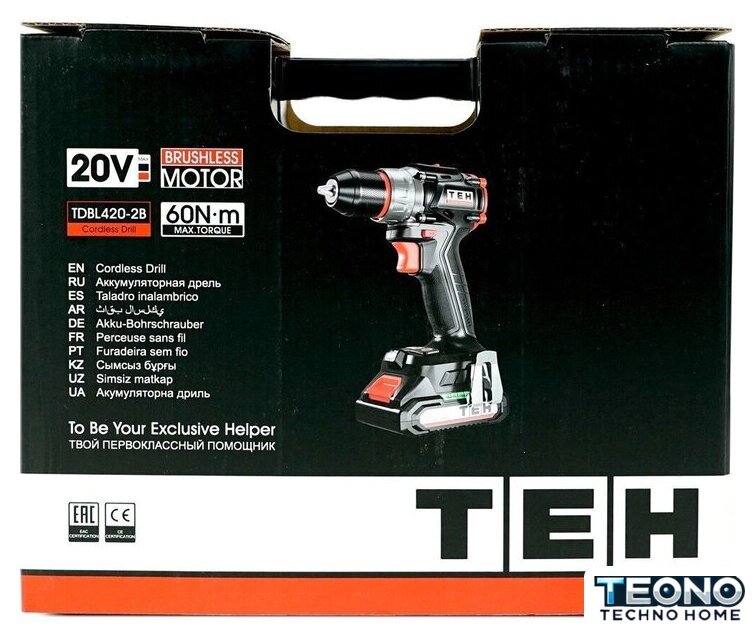 | Комплектация | - Дрель-шуруповерт;, - Аккумуляторная батарея - 2 шт.;, - Зарядное устройство;, - Крюк для ремня;, - Руководство по эксплуатации;, - Кейс. |