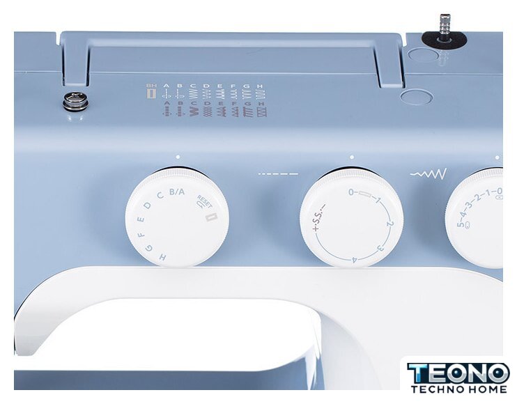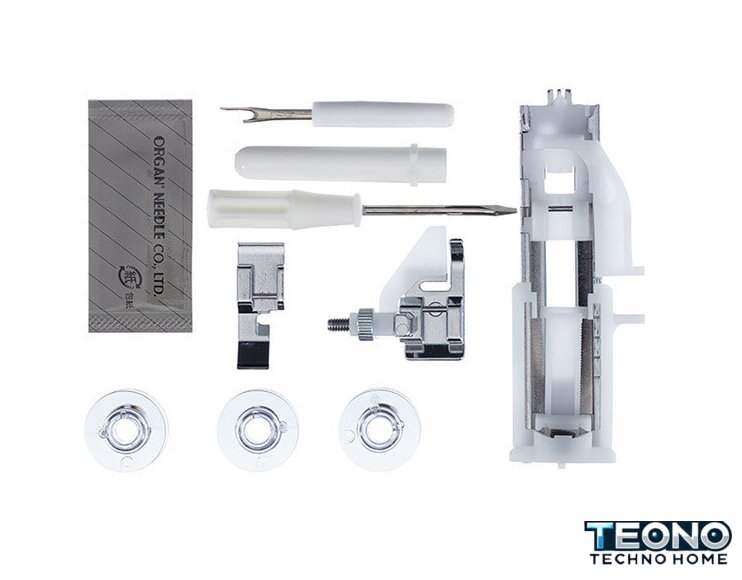 | Комплектация | - Универсальная лапка- Лапка для вшивания молнии односторонняя- Лапка для петли-автомат- Лапка для потайной строчки- Шпульки пластиковые 4 шт. (3 шт. и 1 в машине)- Набор игл Organ — 3 шт.- Вспарыватель- Отвёртка- Мягкий чехол |