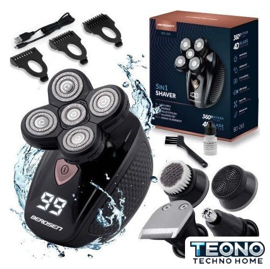 | Комплект поставки | - бритва, - 5 сменных головок, - 3 насадки-гребня (3 мм; 5 мм; 7 мм), - USB-C кабель, - масло для смазки, - щеточка для чистки |