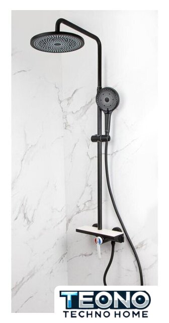 | Комплектация | верхний душ, штанга, ручной душ (лейка), держатель лейки, шланг, смеситель, полочка |