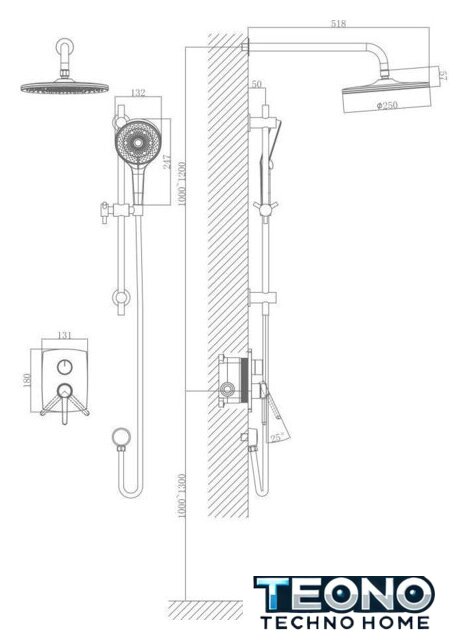 | Диаметр (ширина) верхнего душа | 250 мм |