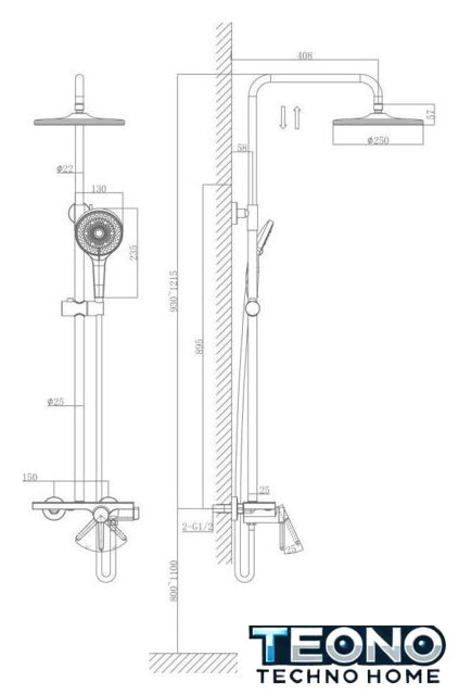 | Диаметр (ширина) верхнего душа | 250 мм |