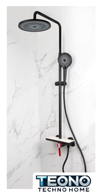 | Комплектация | верхний душ, штанга, ручной душ (лейка), держатель лейки, шланг, смеситель, полочка |