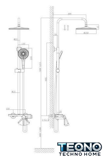 | Диаметр (ширина) верхнего душа | 250 мм |