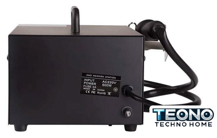 | Комплектация | основной блок, термофен, паяльник, держатель паяльника, держатель термофена, губка для очистки жала паяльника (в ложементе), 3 насадки для термофена разного размера |