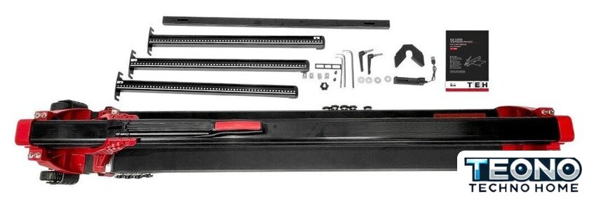 | Комплектация | - Плиткорез;, - Приставные опоры;, - Боковой упор для серийной резки;, - Зарядное устройство для аккумуляторов лазерного указателя;, - Набор крепежных элементов и HEX ключей;, - Руководство по эксплуатации;, - Упаковка (картонная коробка). |