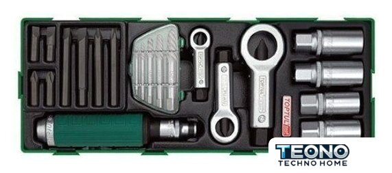 | Комплектация | Инструменты в наборе, экстрактор (4 шт.: 7/64", 9/64", 5/32", 1/4", 19/64"), отвертка (ударная под биты: 1 шт.: 1/2", L=145 мм), гайкорез (3 шт.: 9-12, 12-16, 16-22 мм), шпильковерт (4 шт., 1/2": 6, 8, 10, 12 мм), Отвертки, ударная, отвертка под биты, Доп. комплектация, кейс, Оснастка, Оснастка, насадки-биты (4 шт.: L=36, L=80 мм), держатель (1 шт.: 1/4"х5/16", L=38 мм), Насадки-биты, шлицевые (SL) (4 шт.: 1.2x8 мм - 2 шт., 1.6x10 мм - 2 шт.), крестовые (PH) (4 шт.: PH2 - 2 шт., PH3 - 2 шт.) |