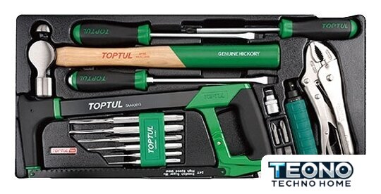 | Комплектация | 1. SAAA3013 Сверхмощная слесарная ножовка (1 шт.)2. DAAQ1A10 Плоскогубцы с изогнутой челюстью и кусачками - 10" (L) 91 шт.)3. GAAV0601 Набор для перфорации - 2x8x115, 3x8x125, 4x10x150, 5x10x165, 6x12x180, 8x12x180 mm (6 шт)4. HAAC2440 Шаровой молоток (24 oz) (1 шт.)5. FIAA1615 1/2" Ударно-поворотная отвертка - 145mm (L)(1 шт.)6. FTAB1610 Сменный держатель бит - 1/2" Dr. x 5/16" (H) - 38mm (L) (1 шт.)7. FSAC1008 & 1010 5/16" Вставные биты с шестигранным хвостовиком - 1.2x8 mm & 1.6x10 mm - 36mm (L) (2 шт.08. FSBC1002 & 1003 5/16" Биты с шестигранным хвостовиком Phillips - PH2 & PH3 - 36mm (L) (2 шт.)9. FBAB0315 Крестовая отвертка Phillips - PH3x150 ( 1 шт.)10. FAAB0818 Шлицевая противосскользящая отвертка 8x175 мм (1 шт)11. FAGB1020 Шлицевая отвертка - 10x200 mm |
