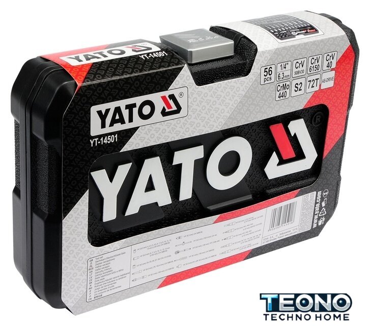 | Комплектация | - Торцевые головки 1/4": 13 предмет(ов) (4; 4.5; 5; 5.5; 6; 7; 8; 9; 10; 11; 12; 13; 14 мм)- Глубокие торцевые головки 1/4": 4 предмет(ов) (6; 7; 8; 10 мм) - Торцевые головки 1/4" Е-тип: 6 предмет(ов) (E4; E5; E6; E7; E8; E10)- Трещотка 1/4"- Т-образный вороток 1/4"- Кардан 1/4"- Удлинители 1/4": 2 предмета (50, 100 мм)- Гибкий удлинитель 1/4"- Отвертка под биты 1/4"- Головки со вставкой 1/4" - 22 предмета |