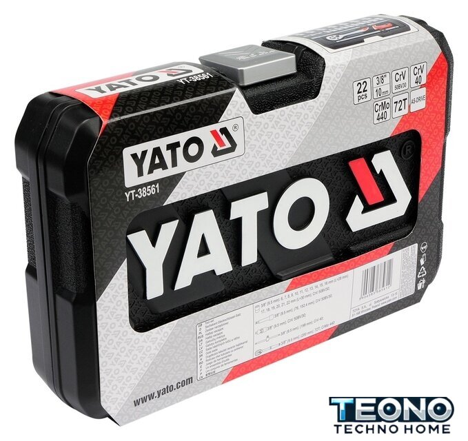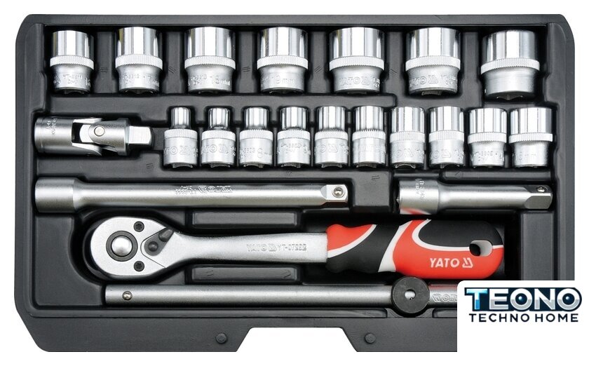 | Комплектация | - Головки: 6, 7, 8, 9, 10, 11, 12, 13, 14, 15, 16 мм (длина 28 мм), 17, 18, 19, 20, 21, 22 мм (длина 30 мм);- Удлинители - 76, 152.4 мм, - Переходник,- Вороток - длина 198 мм,- Изготовлены из инструментальной стали CrV.- Ключ-трещотка, длина 200 мм, 72 зуба, изготовлен из инструментальной стали CrMo. |