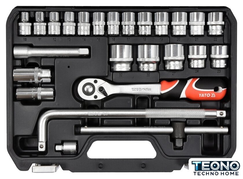 | Комплектация | - Головки 1/2": 10, 11, 12, 13, 14, 15, 16, 17, 18, 19, 20, 21, 22, 23, 24 мм (L=38 мм); 27, 30, 32 мм (L=42 мм);- Удлинитель 1/2", 127 мм;- Головки свечные 1/2": 16, 21 мм;- Вороток 1/2", 255 мм;- Трещотка 72Т, 1/2", 255 мм;- Адаптер 1/2", 317 мм;- Переходник 1/2"(F)x3/8"(M) |