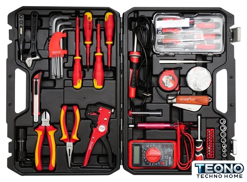 | Комплектация | - мультиметр цифровой 500В;- тестер напряжения цифровой 12-250V с дисплеем;- электропаяльник стержневой 60В;- клещи-автомат для снятия изоляции 0,5-6 мм 175 мм;- шприц для удаления припоя;- ключ разводной цельный 19х150 мм (черный);- бокорезы 160 мм (до 1000В);- утконосы 160 мм (до 1000В);- отвертки плоские (до 1000В): 4х75, 5.5х125;- отвертки крестовые диэлектрические (до 1000В): РН1х80, РН2х100;- набор точных часовых отверток: 1,4х50, 2х50, 2,4х50, РН00х50, РН0х50, РН1х50;- ключи шестигранные от 1,5 до 10 мм;- нож складной 190 мм;- нож с отломным лезвием 9 мм;- пинцет антимагнитный кислотостойкий прямой 140 мм HRC 30;- рулетка 3 м х 19 мм (стальная лента с нейлоновым покрытием с миллиметровой шкалой);- фонарик алюминиевый 9 LED;- изолента 19 мм х 20 м черная;- головки 1/4’’: плоские 3, 4, 5.5, 6 мм; РН1, РН2, РН3; Т8, Т10, Т15, Т20, Т25, Т27; 6-гранные 2, 2.5, 3, 4, 5, 6мм |