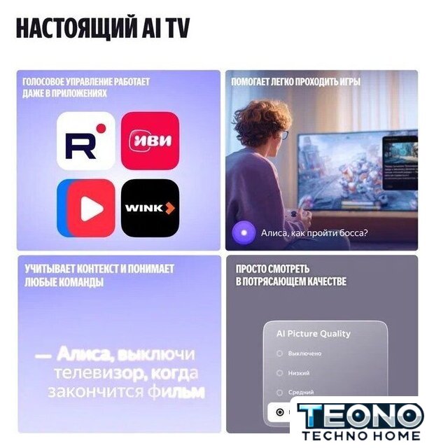| Оригинальные функции | Yandex AI Picture Quality, Yandex Picture Quality, Yandex AQ, MEMC |