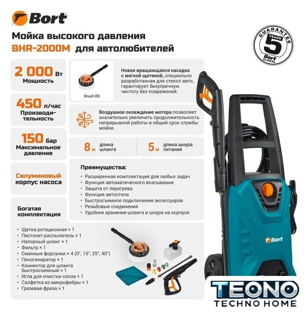 | Комплектация | - Пистолет-распылитель (1 шт)- Напорный шланг (1 шт)- Фильтр (1 шт)- Сменные форсунки (4 шт)- Пеногенератор (1 шт)- Коннектор для шланга быстросъемный (1 шт)- Игла для очистки сопла (1 шт)- Салфетка из микрофибры (1 шт)- Грязевая фреза (1 шт)- Щетка ротационная (1 шт) |