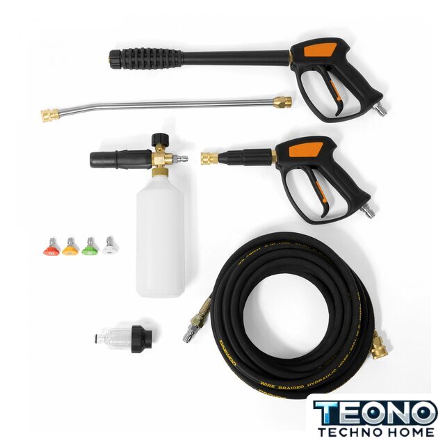 | Комплектация | Мойка высокого давления - 1 шт.Профессиональный пистолет DPG350 550мм - 1 шт.Металлическое копье из нержавеющей стали 455 мм - 1 шт.Короткий пистолет - 1 шт.Армированный шланг высокого давления 10м - 1 шт.Профессиональный пеногенератор - 1 шт.Быстросъемные форсунки (0°/15°/25°/40°) - 4 шт.Фильтр тонкой очистки - 1 шт.Полнотелые широкие колеса 10" - 2 шт.Кабель подключения 275 мм - 1 шт.ИнструкцияКоробка |