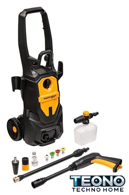 | Комплектация | • мойка высокого давления, • ручка, • пистолет−распылитель, • трубка струйная, • пенообразователь, • шланг высокого давления, • набор насадок (4 форсунки, грязевая фреза), • набор аксессуаров для комфортного использования (держатель пистолета, держатель шнура питания, держатель форсунок, фильтр подачи воды, игла для очистки форсунки, винты), • руководство по эксплуатации, • гарантийный талон |