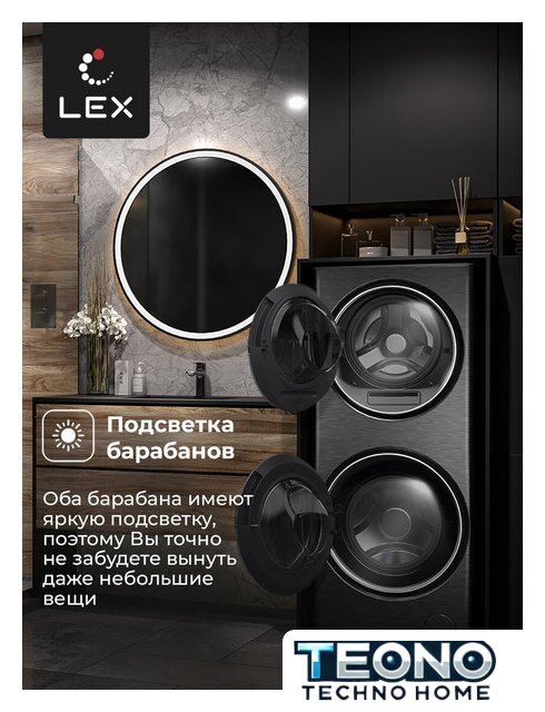 | Максимальная загрузка | 15 кг (верхний барабан – 5 кг, нижний барабан – 10 кг) |
