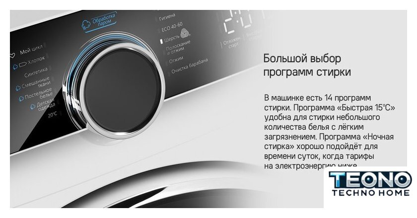 | Все программы | ХлопокСинтетикаСмешанные тканиПостельное бельеДетская одежда20°CБыстрая 15°CСтерилизация ECO 40-60Шерсть Полоскание Отжим Очистка барабана |