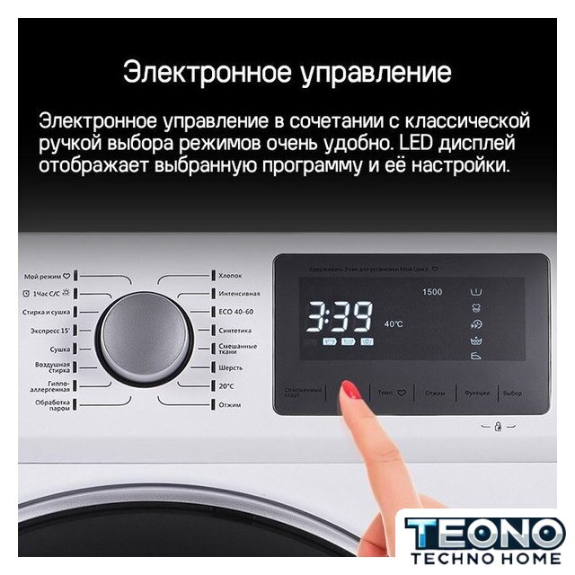| Все программы | ХлопокИнтенсивнаяЭКО 40-60СинтетикаСмешанные тканиШерсть20°ОтжимОбработка паромГипоаллергеннаяВоздушная стиркаСушкаЭкспресс 15'Стирка и сушка1 час С/СМой режим |