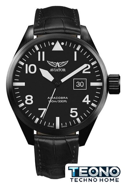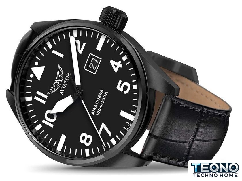 черный корпус, черный циферблат, кожаный ремешок
