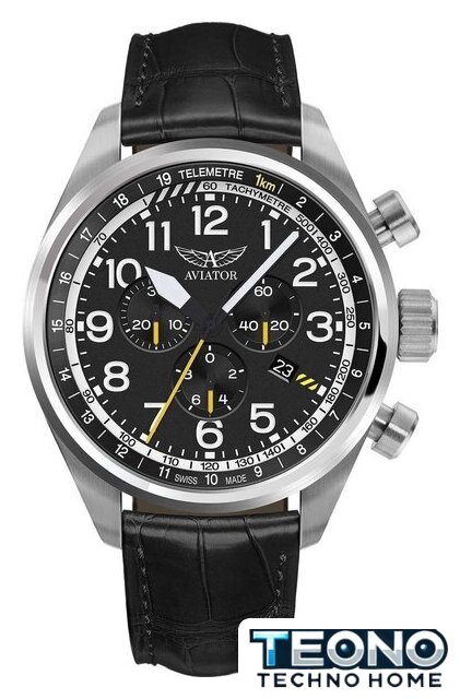черный корпус, серый циферблат, кожаный ремешок