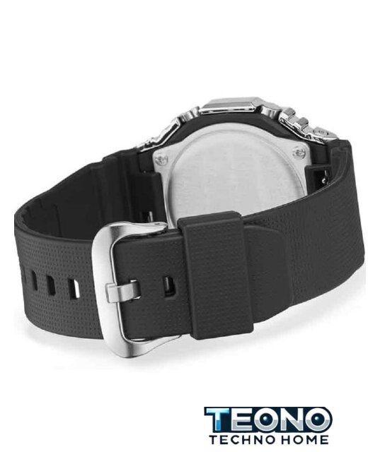 серебристый корпус, черный циферблат, пластиковый ремешок