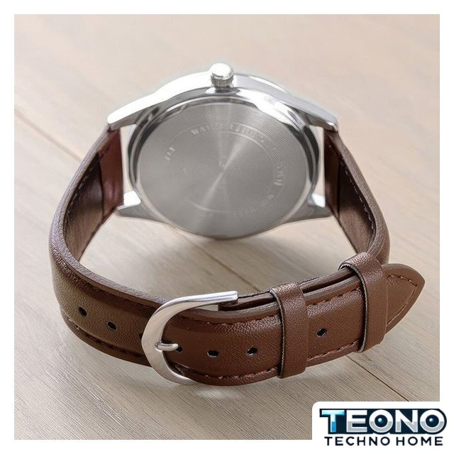 серебристый корпус, серебристый циферблат, кожаный ремешок
