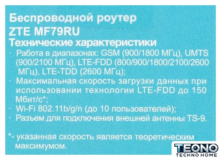 | Класс скорости Wi-Fi | 150 Mbps |