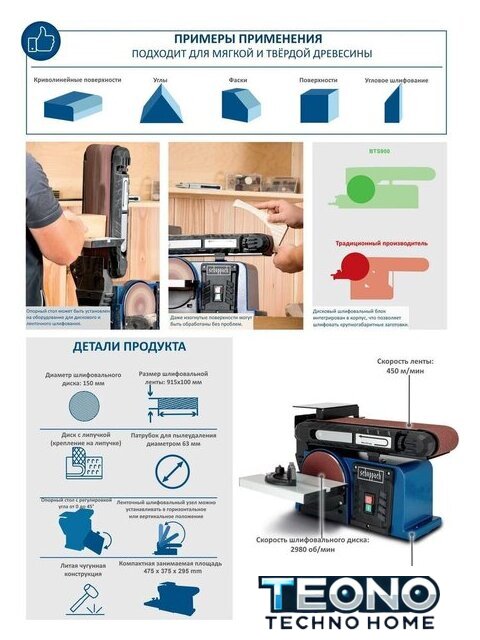 | Комплект поставки | - 1 ленточная и дисковая шлифовальная машина- 1 поперечный упор- 1 шлифовальный стол- 3 шлифовальные ленты P80 / P120 / P240- 3 шлифовальных диска P80 / P120 / P240- 1 шестигранный ключ- 1 руководство по эксплуатации |